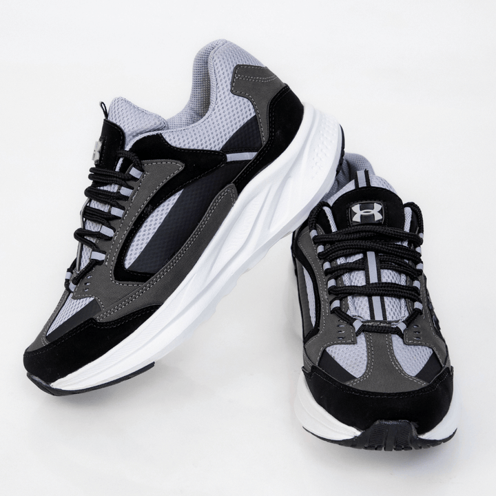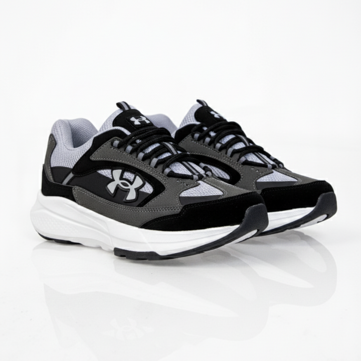 Sus acabados reflectivos aportan un toque llamativo y distintivo, mientras que la suela acolchada con colores propios asegura confort superior y soporte durante todo el día.